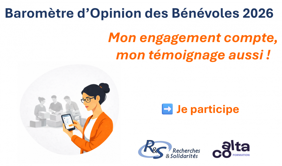 Nous vous proposons aujourd'hui de vous exprimer, dans le Baromètre d'Opinion des Bénévoles 2026, pour témoigner de votre expérience bénévole et de vos ressentis.